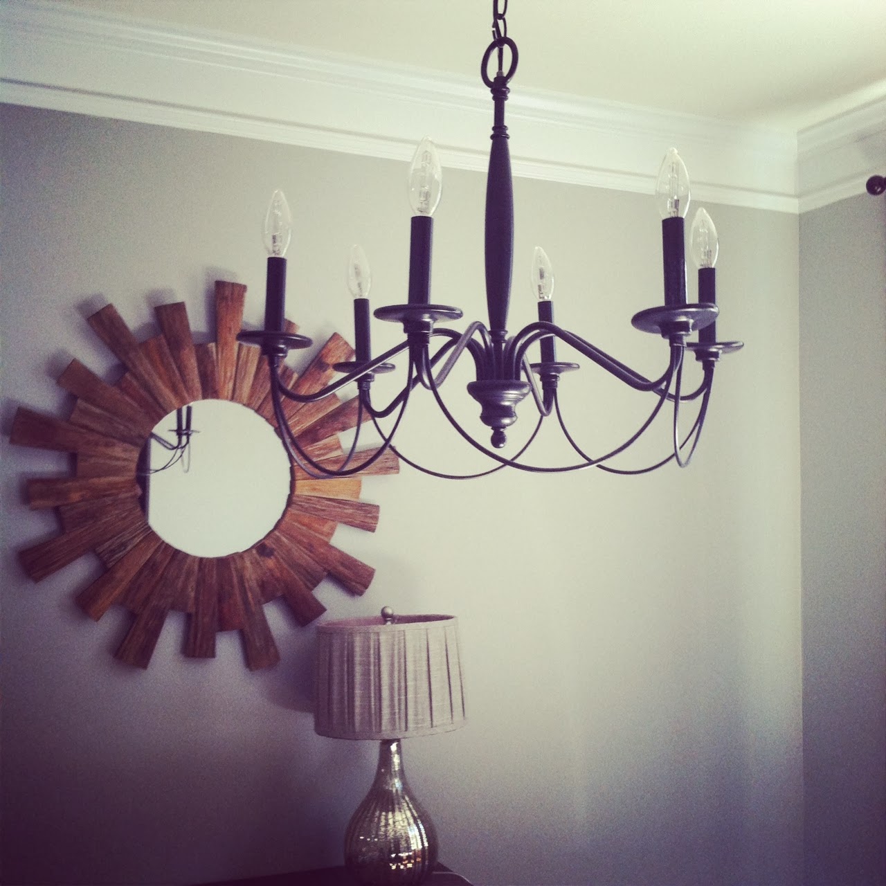 Saturday we slept in. Until 10am (what??!!). We ran the obligatory weekend errands (oil change, Target, Lowes) and finally hung our new mirror in the dining room. I got this beauty on clearance at HomeGoods in Mt. P. The newish chandelier was bought at the Pottery Barn Outlet Day after Thanksgiving Sale (marked down to $60!!).